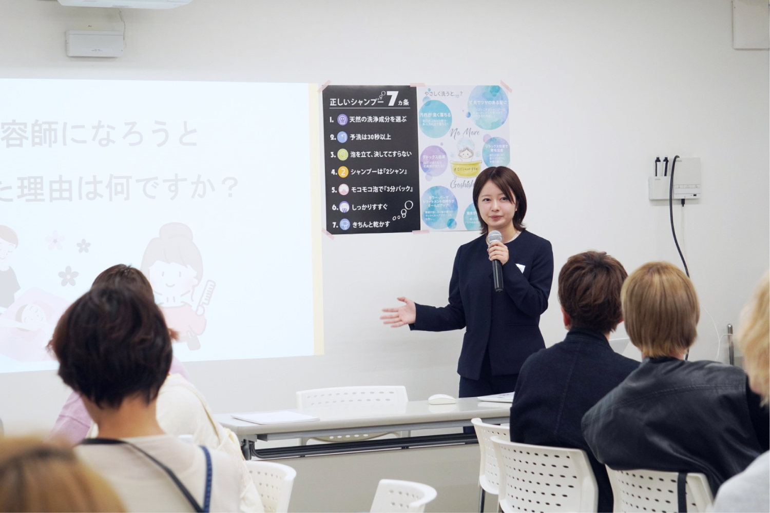 ヘッドスパ・エステ・メイクなどの技術レッスンの他、商品のデモンストレーションやトークポイントなど、店販に関連した販売レッスンも実施。サロン様のご要望に合わせてカリキュラムを組み、出張レッスンも行っておりますので、忙しい美容師の皆様が学びやすい環境を整えています。